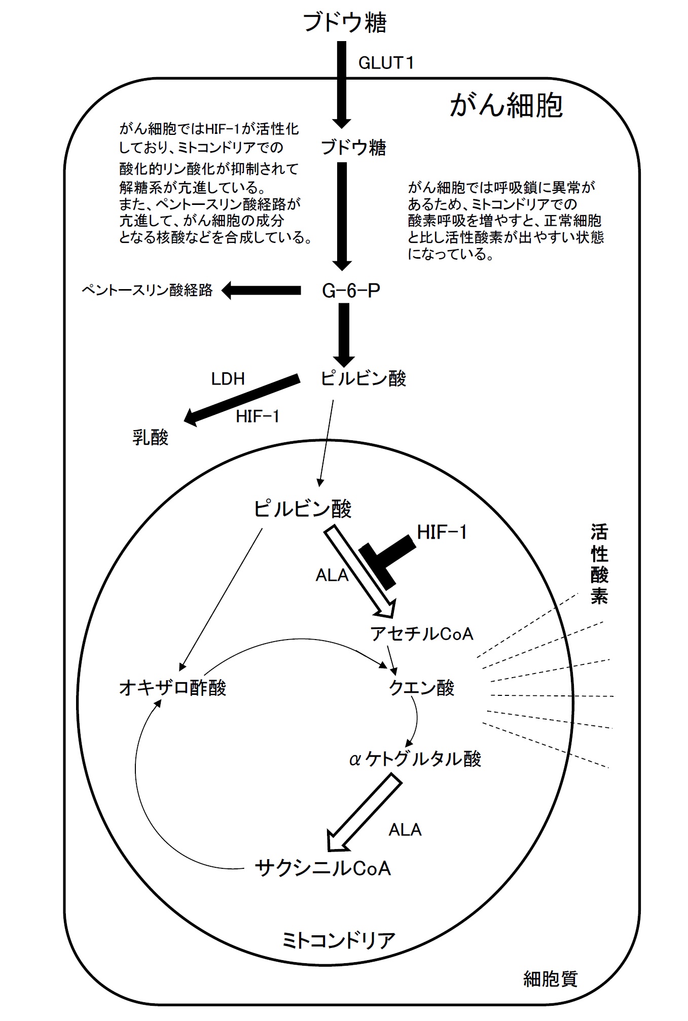 これはがん細胞の眠らされている不完全なミトコンドリアを活発にして、活性酸素を大量に発生させてがん細胞を細胞死に向かわせるものです。