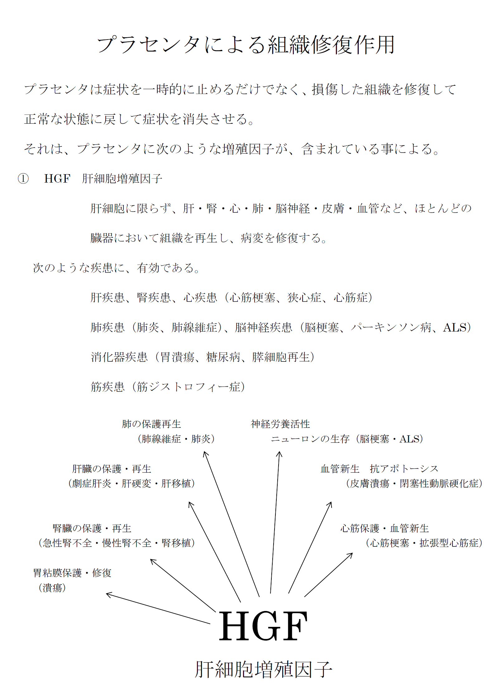 全国でも1~2番のリーズナブルな価格にしておりますので、ぜひ皆様方にもこのプラセンタの隠れた作用の恩恵にあずかっていただきたいと願っております 以前より通院されていた68歳の肝硬変末期の患者様は肝硬変特有のしわしわでどす黒い肌だったのですが、プラセンタ注射を続けると張りのあるつやつやとした肌に変化しました。また、肝硬変であるにもかかわらず、肝機能が改善し、血小板数も明らかに増加しました。そして驚いたことに、アメリカ旅行に行けるまで元気になられました。その時よりプラセンタの有効性を確信しております。